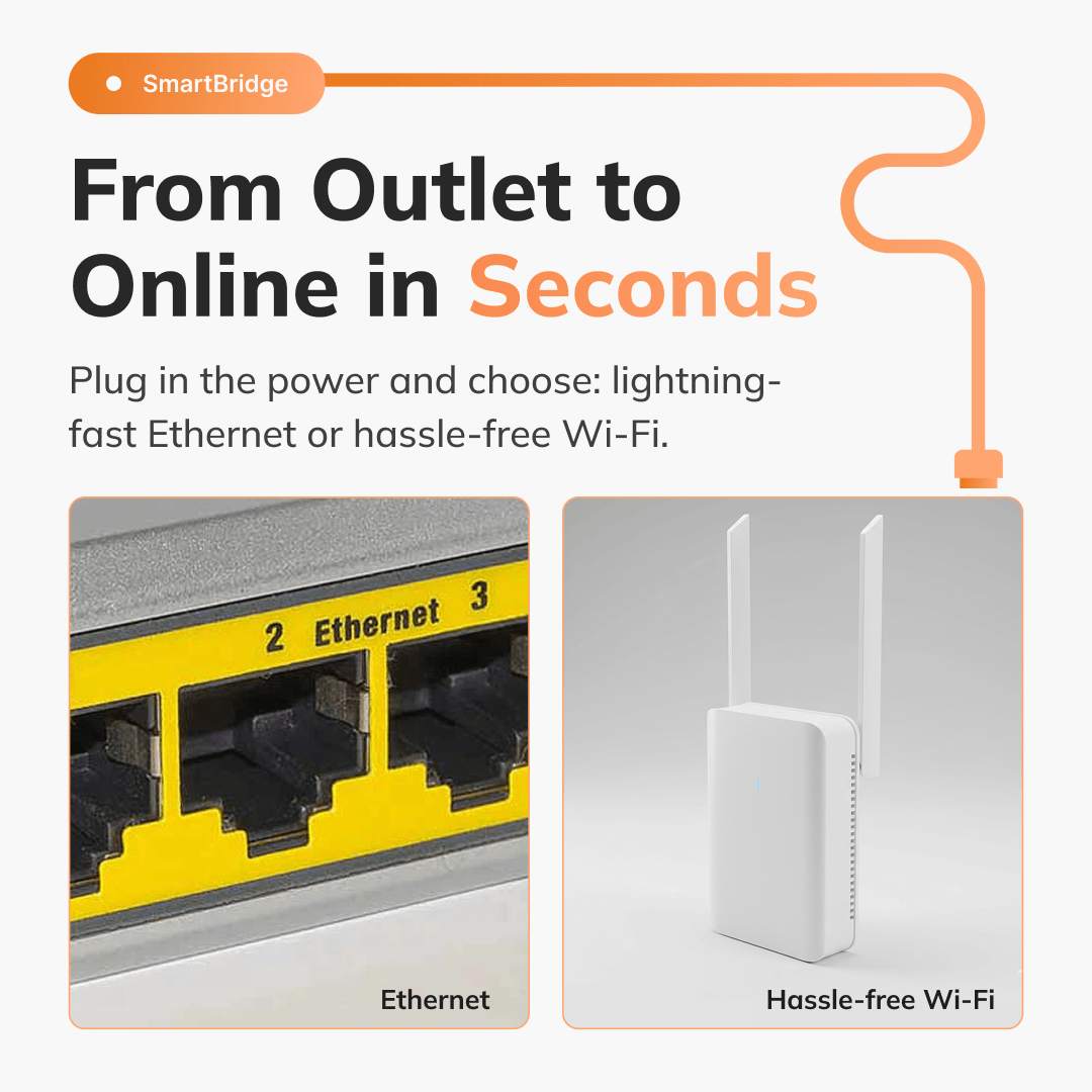 Simply connect your SmartBridge with any modem or wifi-extender with a vacant ethernet port.